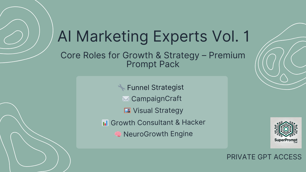 Whether you're building funnels, running campaigns, designing visual narratives, scaling growth loops, or tapping into neuroscience-backed persuasion… this prompt pack equips you with expert-level assistants ready to deliver.